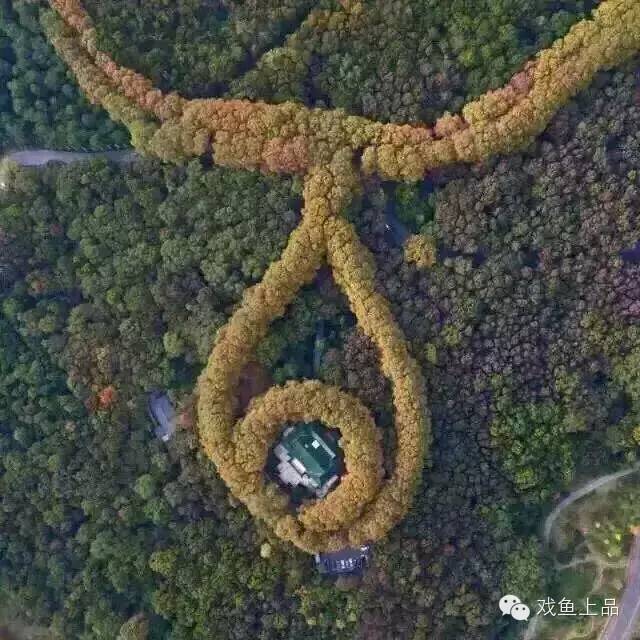 深秋的中山陵,黄色梧桐树排列而成的项链,美龄宫就如同一颗美丽的蓝宝石。这是一个只有南京才拥有的爱情奇迹!